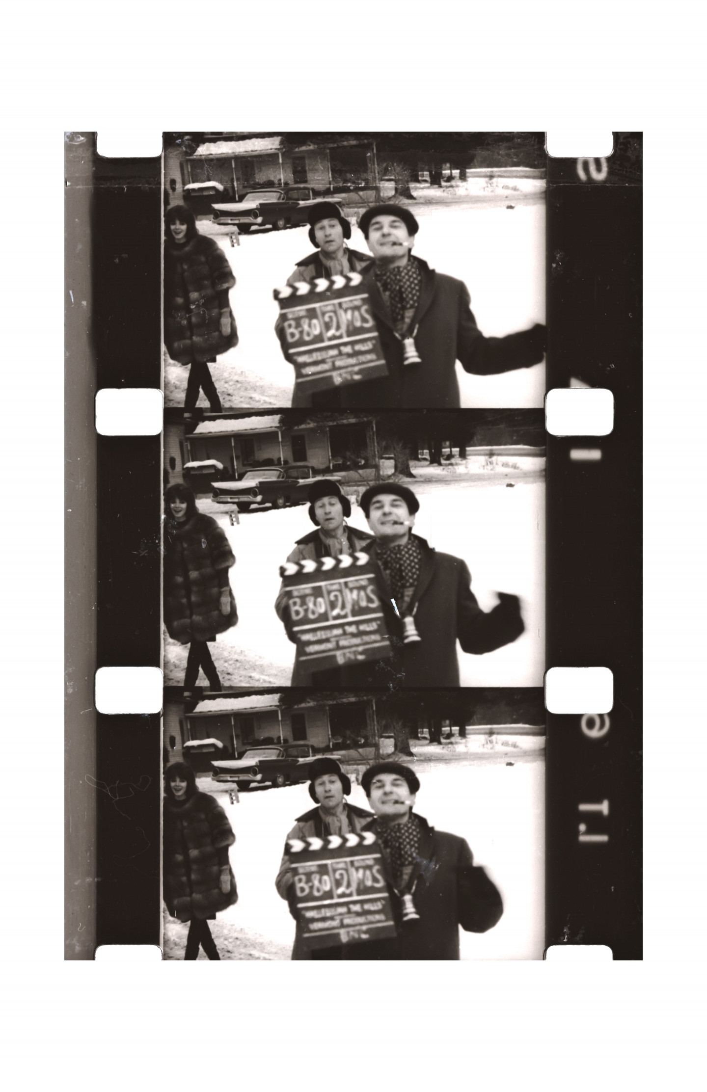 The composition of the photographs on view maintain the distinct form of the film strip, each containing two or three horizontal images within a vertical film strip that continues well past the immediate borders of the printed image. The effect is one of subtle change, with the sense of movement ultimately found in the momentary gap between each frame. Born in Lithuania, Mekas fled the country during the second world war, surviving and escaping a labor camp before living for two years in a displaced persons’ camp. In 1949 he arrived to Williamsburg, New York. It was here that he began making films with his first Bolex camera, after spending years the previous recent years absorbing films to pass the time, and having joined experimental film clubs in New York. In 1955 he moved to Manhattan, where his practice of filming the people he met in daily life really gained momentum. Mekas reflected on this moment: "That's really when my new life began.” Today, this body of eighty images made over the years speaks to the highly personal and subtle documentary sensibility of Mekas’ filmmaking, and its central place within his life as one, always, “driven by necessity.”