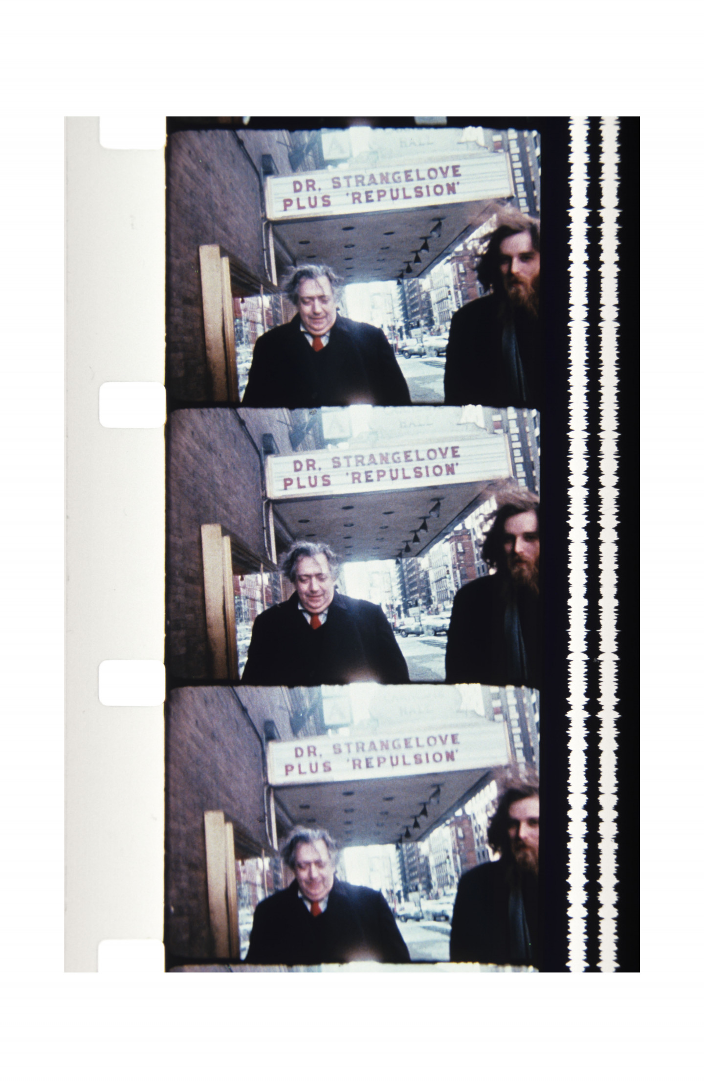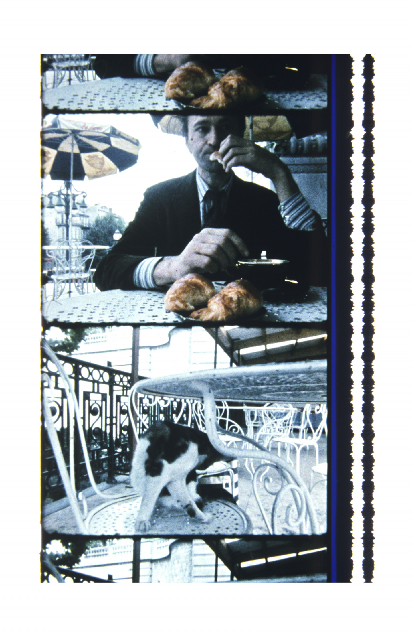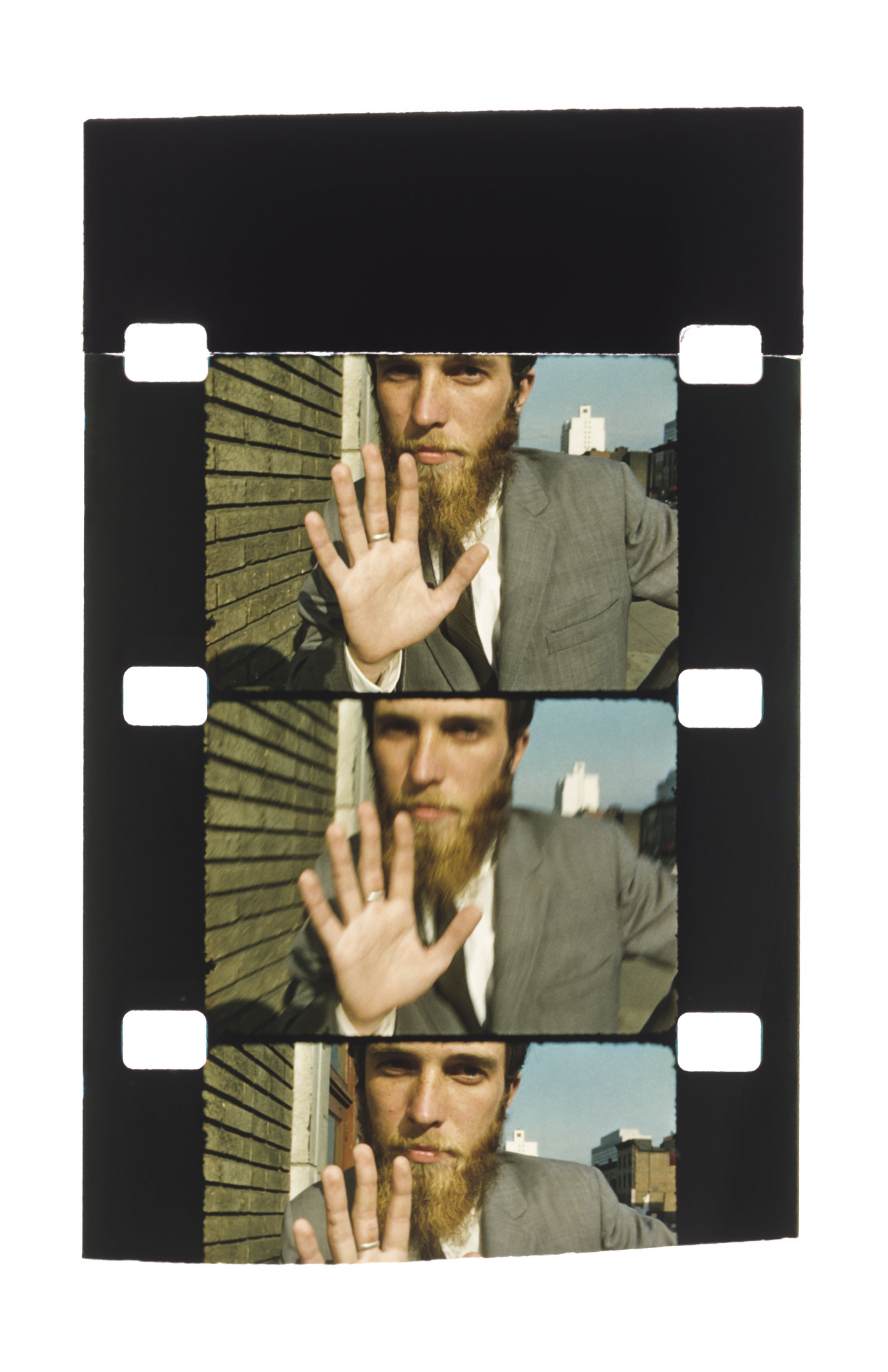 The composition of the photographs on view maintain the distinct form of the film strip, each containing two or three horizontal images within a vertical film strip that continues well past the immediate borders of the printed image. The effect is one of subtle change, with the sense of movement ultimately found in the momentary gap between each frame. Born in Lithuania, Mekas fled the country during the second world war, surviving and escaping a labor camp before living for two years in a displaced persons’ camp. In 1949 he arrived to Williamsburg, New York. It was here that he began making films with his first Bolex camera, after spending years the previous recent years absorbing films to pass the time, and having joined experimental film clubs in New York. In 1955 he moved to Manhattan, where his practice of filming the people he met in daily life really gained momentum. Mekas reflected on this moment: "That's really when my new life began.” Today, this body of eighty images made over the years speaks to the highly personal and subtle documentary sensibility of Mekas’ filmmaking, and its central place within his life as one, always, “driven by necessity.”