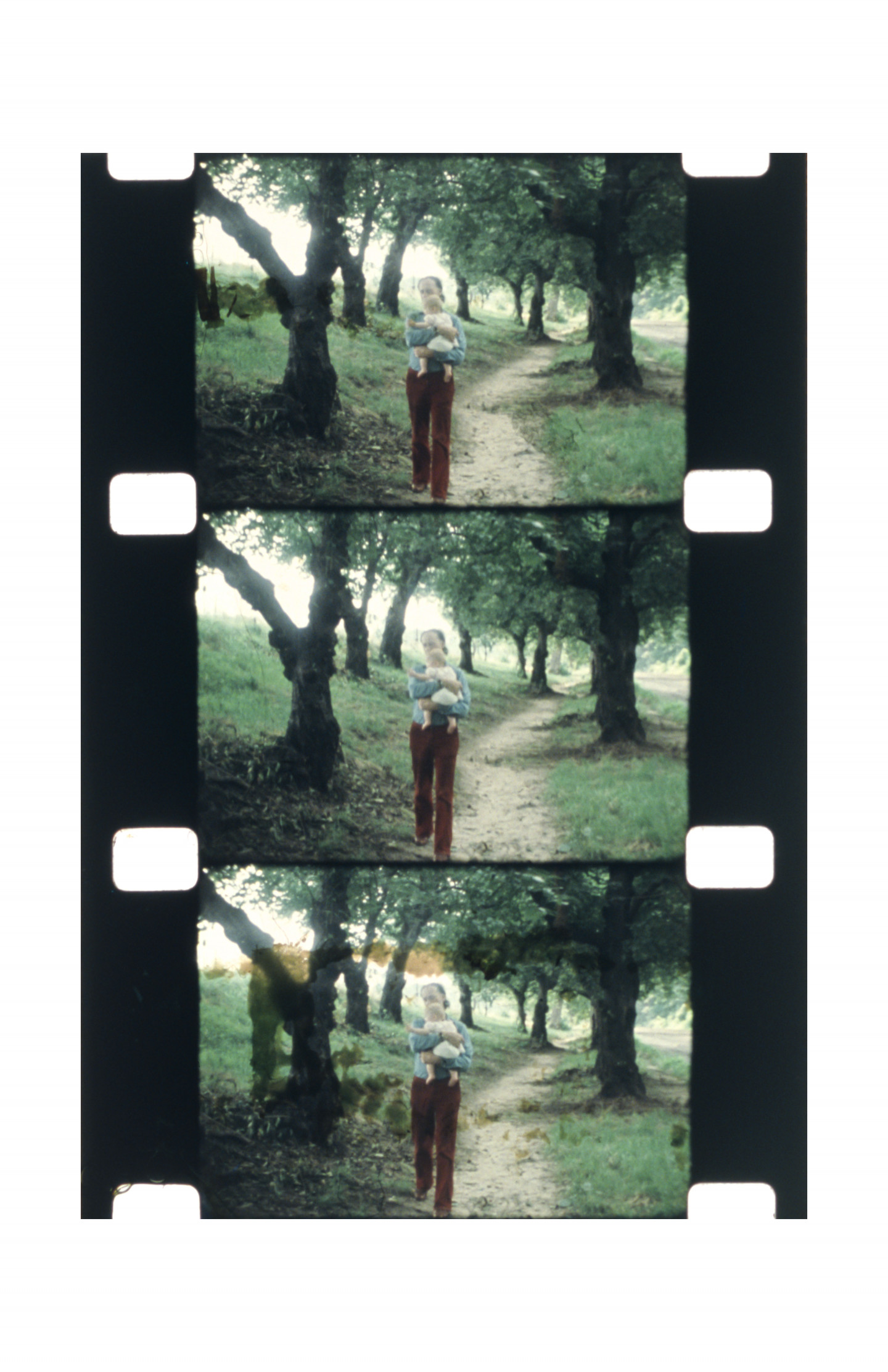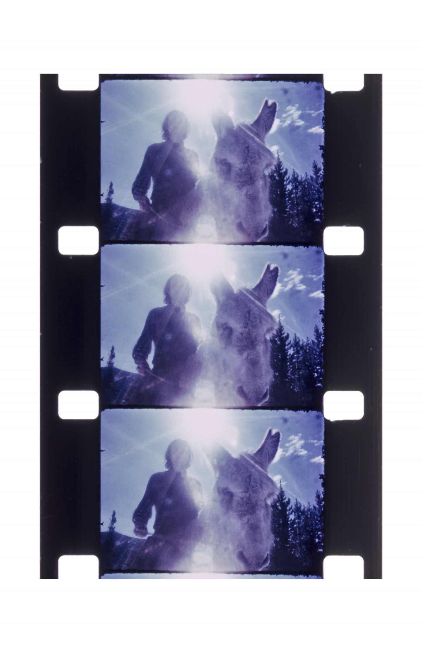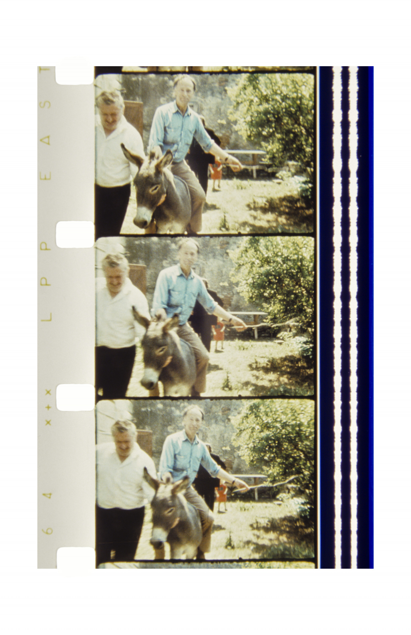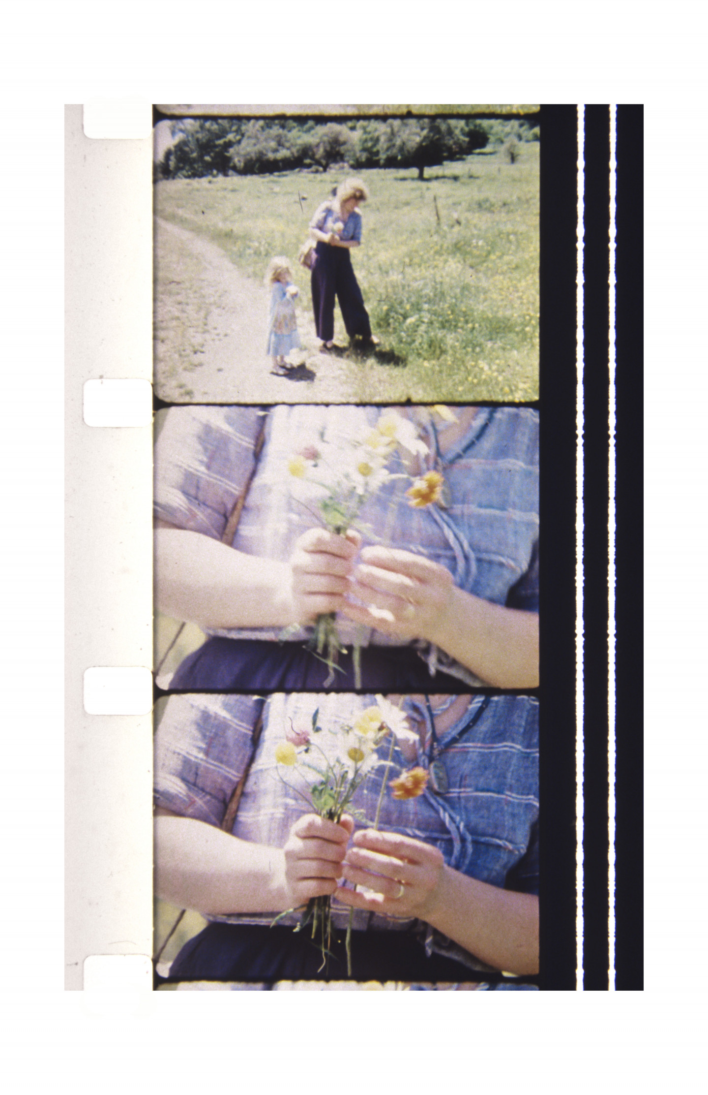 The composition of the photographs on view maintain the distinct form of the film strip, each containing two or three horizontal images within a vertical film strip that continues well past the immediate borders of the printed image. The effect is one of subtle change, with the sense of movement ultimately found in the momentary gap between each frame. Born in Lithuania, Mekas fled the country during the second world war, surviving and escaping a labor camp before living for two years in a displaced persons’ camp. In 1949 he arrived to Williamsburg, New York. It was here that he began making films with his first Bolex camera, after spending years the previous recent years absorbing films to pass the time, and having joined experimental film clubs in New York. In 1955 he moved to Manhattan, where his practice of filming the people he met in daily life really gained momentum. Mekas reflected on this moment: "That's really when my new life began.” Today, this body of eighty images made over the years speaks to the highly personal and subtle documentary sensibility of Mekas’ filmmaking, and its central place within his life as one, always, “driven by necessity.”